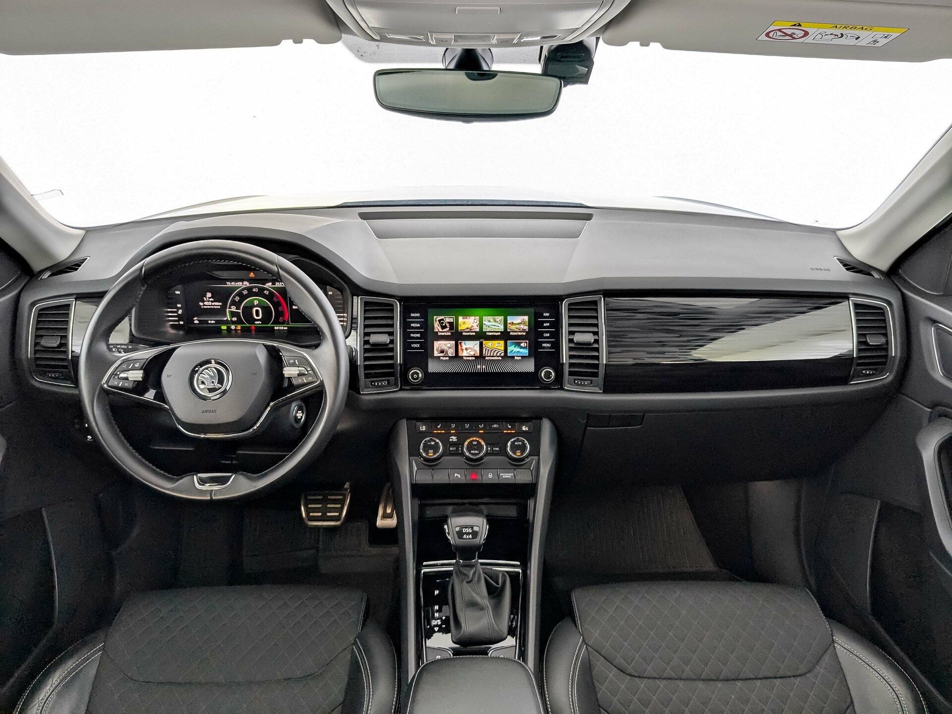 • Спортивное 3-спицевое кожаное рулевое колесо с управлением радио, телефоном и DSG